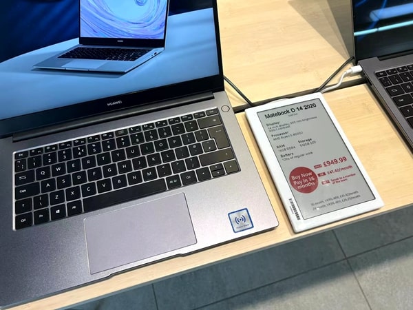 Etichette YalaTech ESL utilizzate nei flagship store Huwei nel Regno Unito