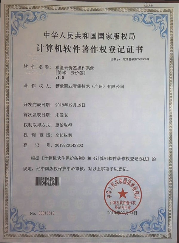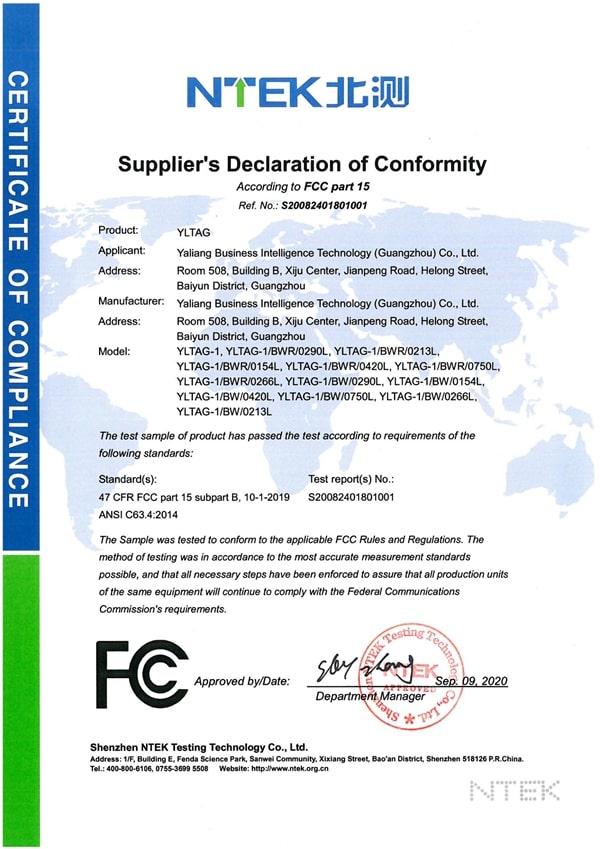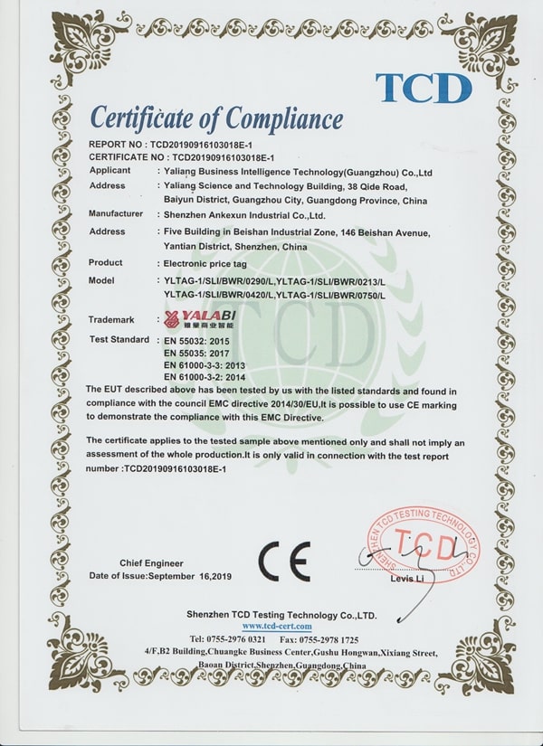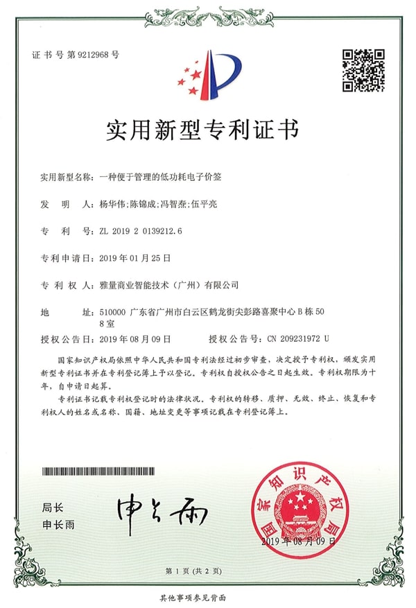 Certificato di brevetto di Tag di vendita al dettaglio digitali YalaTech