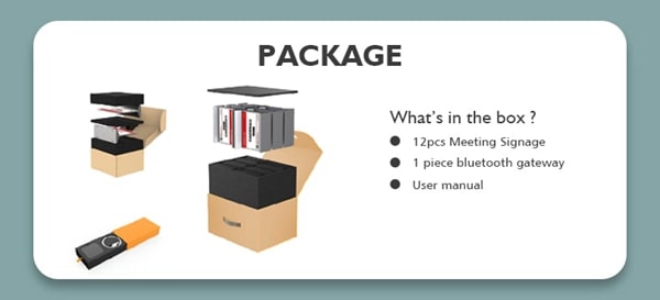 È una segnaletica per riunioni Bluetooth controllata da app, che aiuta a organizzare la riunione in modo semplice ed efficiente.